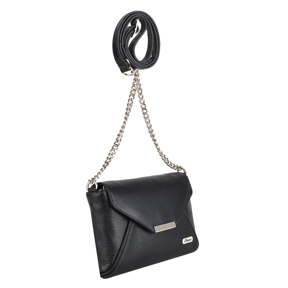 Ideal para llevar los básicos en tu día a día. Confeccionada con piel genuina graneada suave al tacto su estructura compacta, denota elegancia gracias a el contraste creado entre la piel y el brillo de los herrajes, principalmente la cadena que conforma el asa larga ajustable.